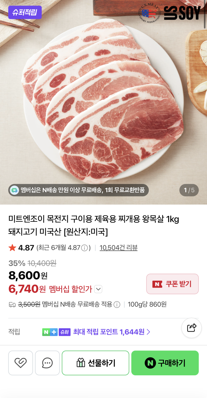 미국산 목전지 슬라이스 1kg 6,740원 멤버십무배