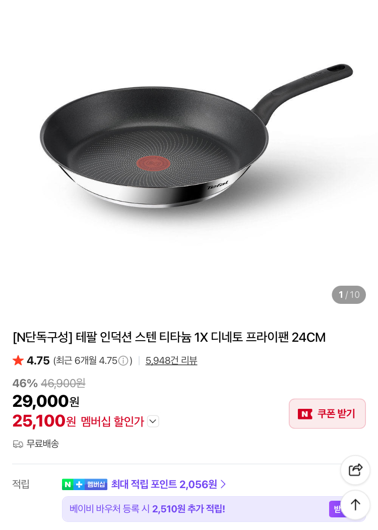 테팔 인덕션 겸용 프라이팬 20cm 1.9만원 등등 할...