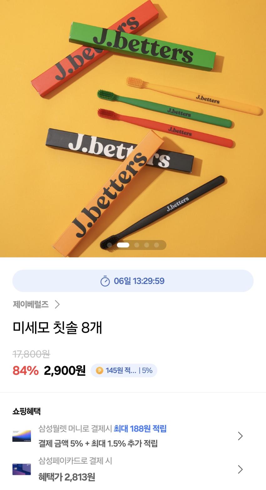 삼성월렛 제이베럴즈 미세모 칫솔 8개 2,900원