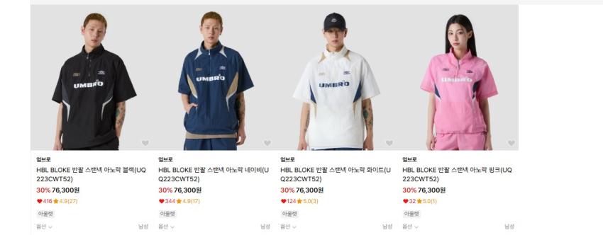 엄브로 반팔 아노락 실버 기준 68670원 무배