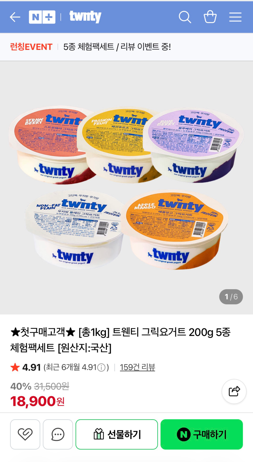 트웬티 그릭요거트 체험팩 5개 세트 40% 할인 18,...