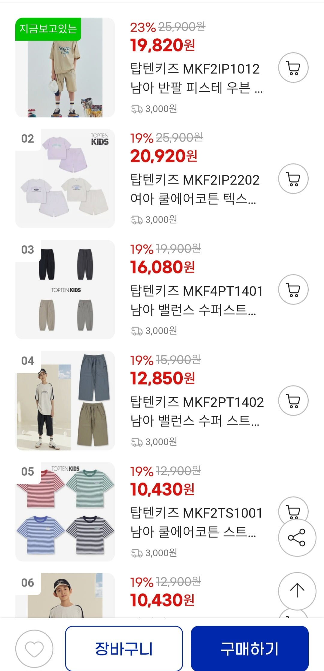 [지마켓]탑텐키즈 남아 여아 셋업 티셔츠 등 (10,430원/3만무배)