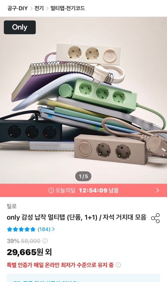 [오늘의집]틸로 only 감성 납작 멀티탭 (단품1+1) (29,665원/2,800원) - 딜모아