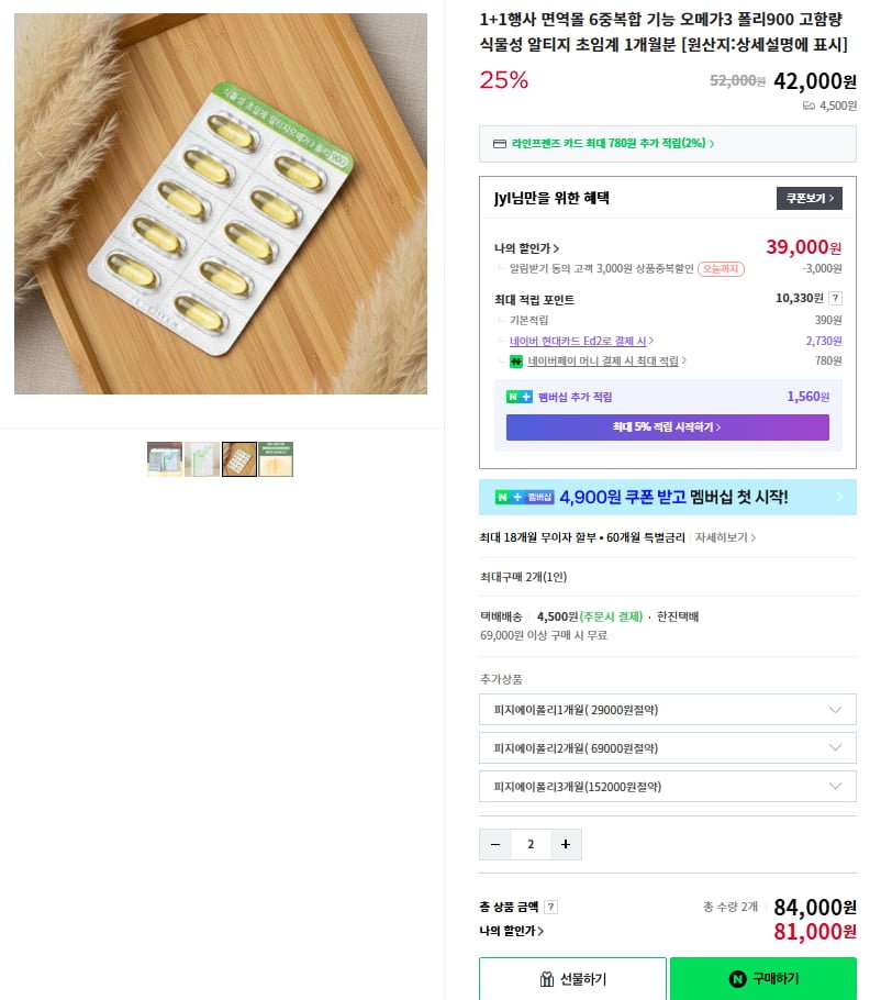[네이버]1+1 국산 식물성 알티지 초임계 오메가3 4개월분 240정 (84,000/무료)