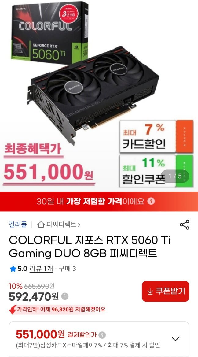 [G마켓]피씨디렉트 Colorful 5060ti 8,16gb 모델외 5080 (삼카 551,000원~/무료)