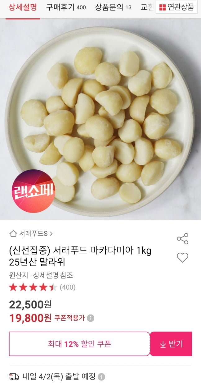 [옥션]서래푸드 마카다미아 1kg 25년산 말라위산 (16,820원/무료)