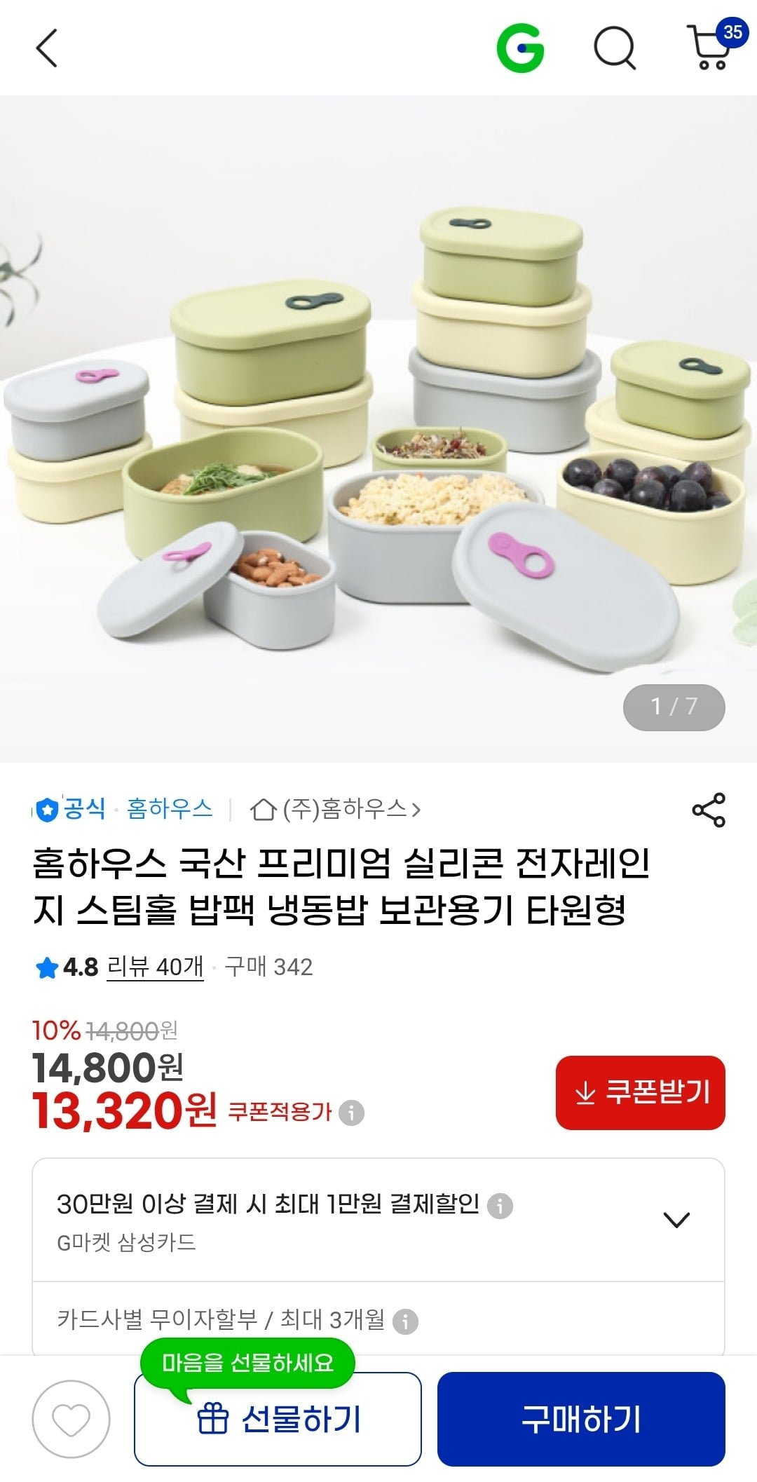 [지마켓]국산 실리콘 전자레인지 스팀홀 밥팩 냉동밥 보관용기 (13,320원/무료)