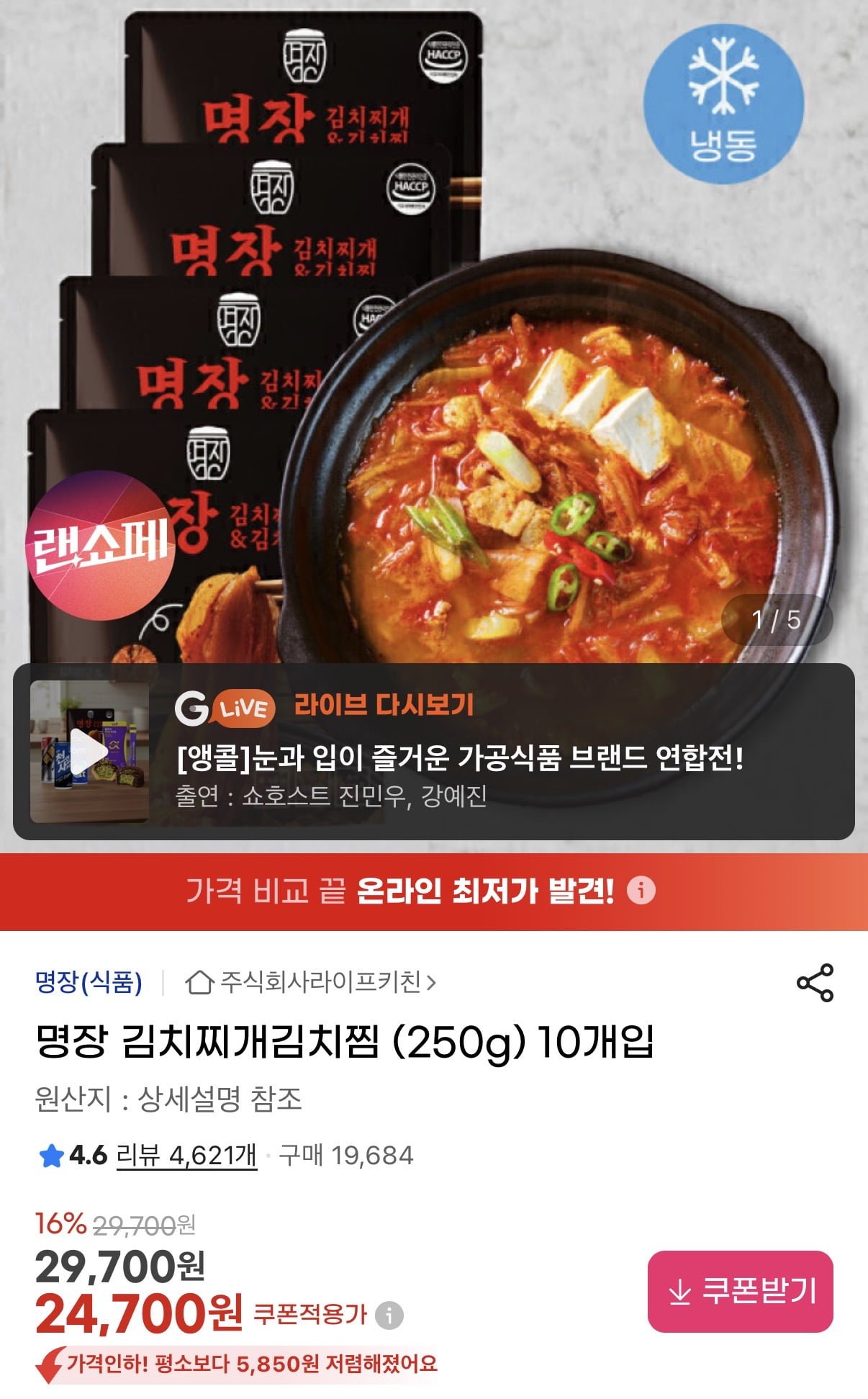 [지마켓]명장 김치찌개 김치찜 250g 10개입(24,700원/무배)