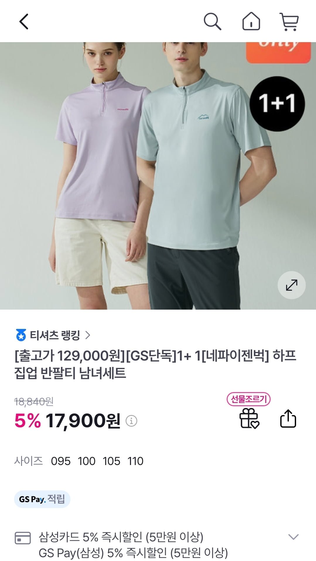 [GS샵]네파이젠벅 하프집업 반팔티 2종세트 (17,900원/무료) - 딜모아