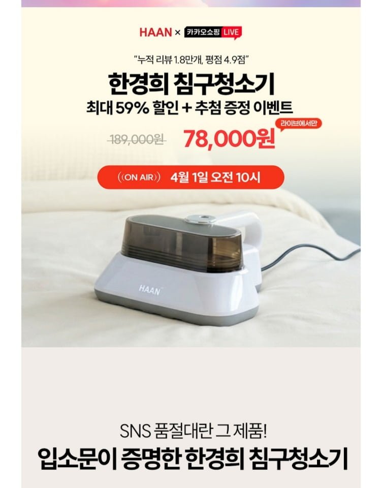 [카카오톡]한경희 UV살균 침구청소기/스팀/진공청소기 (78,000원/무료)