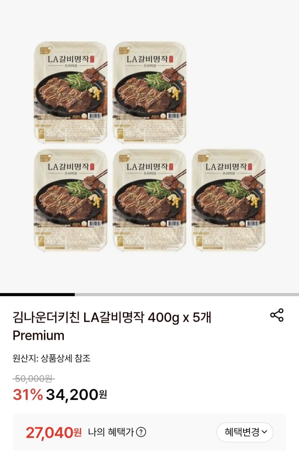 [롯데온]김나운더키친 LA갈비명작 400g x 5개 (27,000원/무료) - 딜모아