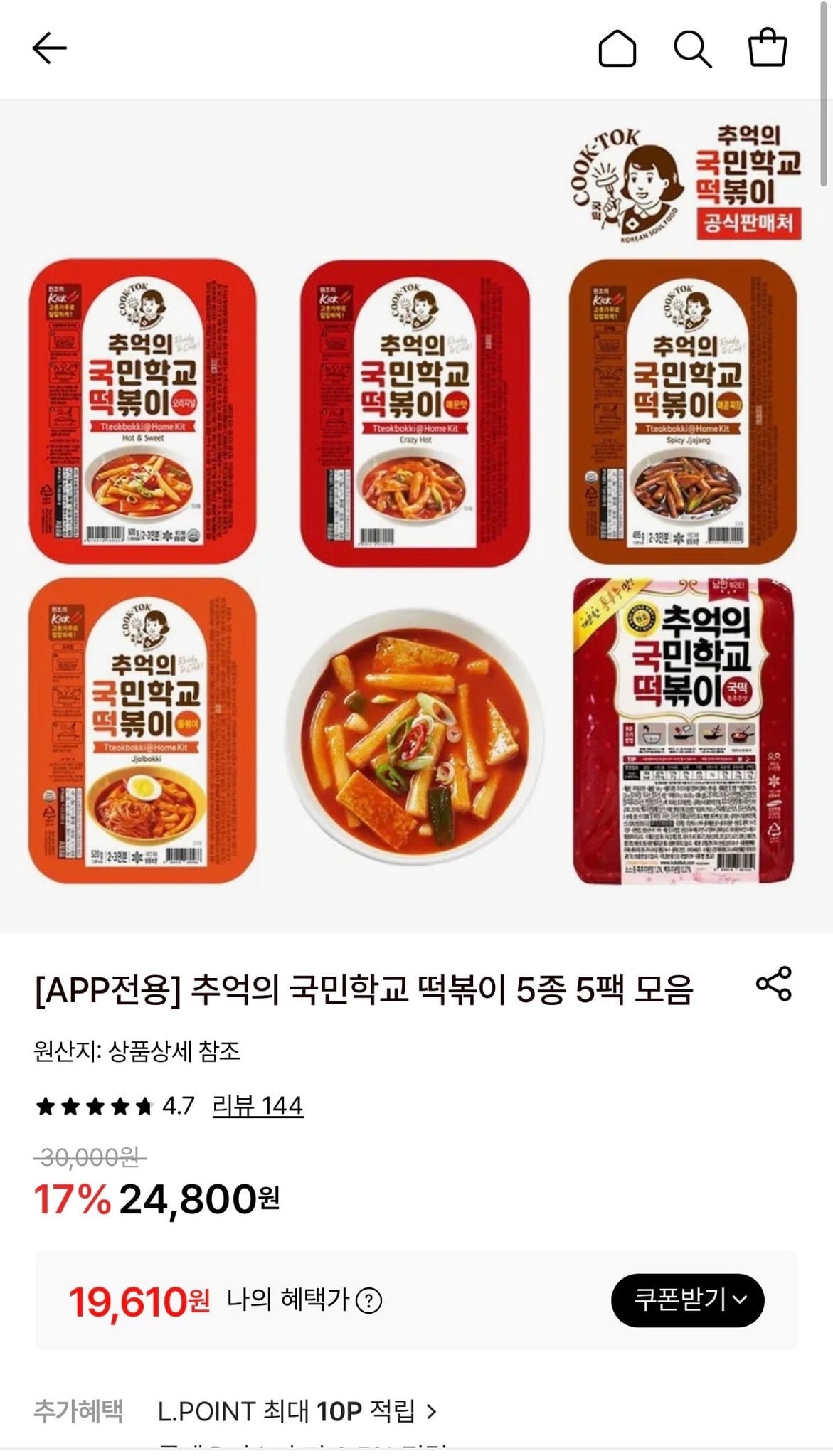 [롯데온]추억의 국민학교 떡볶이 5종 5팩 (19,610원/무료) - 딜모아