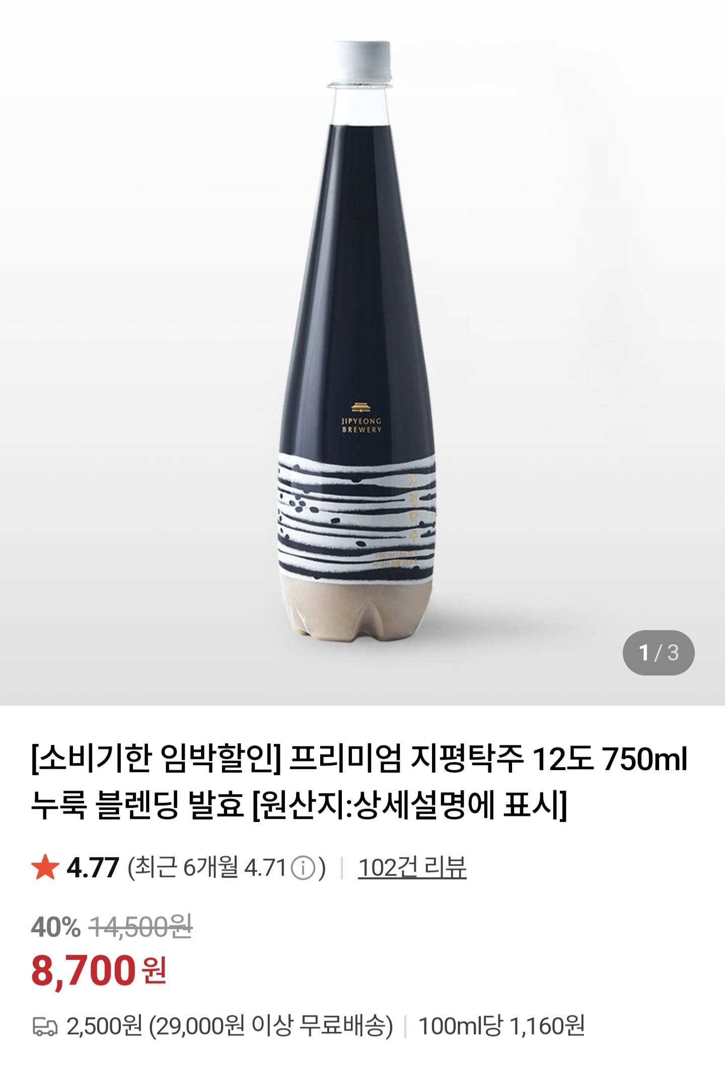 [네이버]지평탁주 12도 750ml(임박) (8,700원/조건무배)