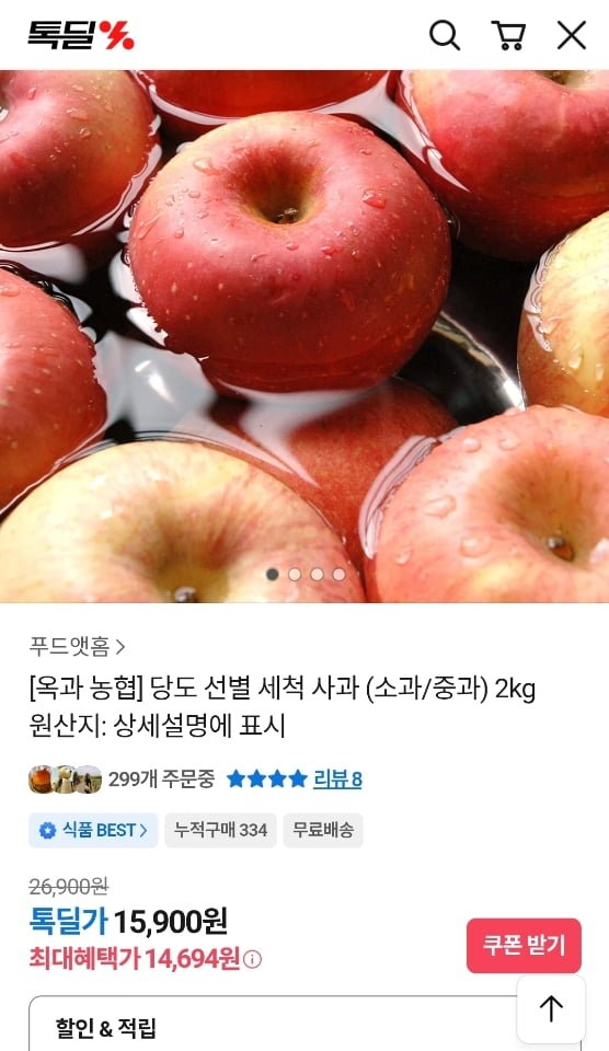 [톡딜]옥과 농협 당도선별 세척 사과 (소과/중과) 2kg (14,900원~/무료) - 딜모아
