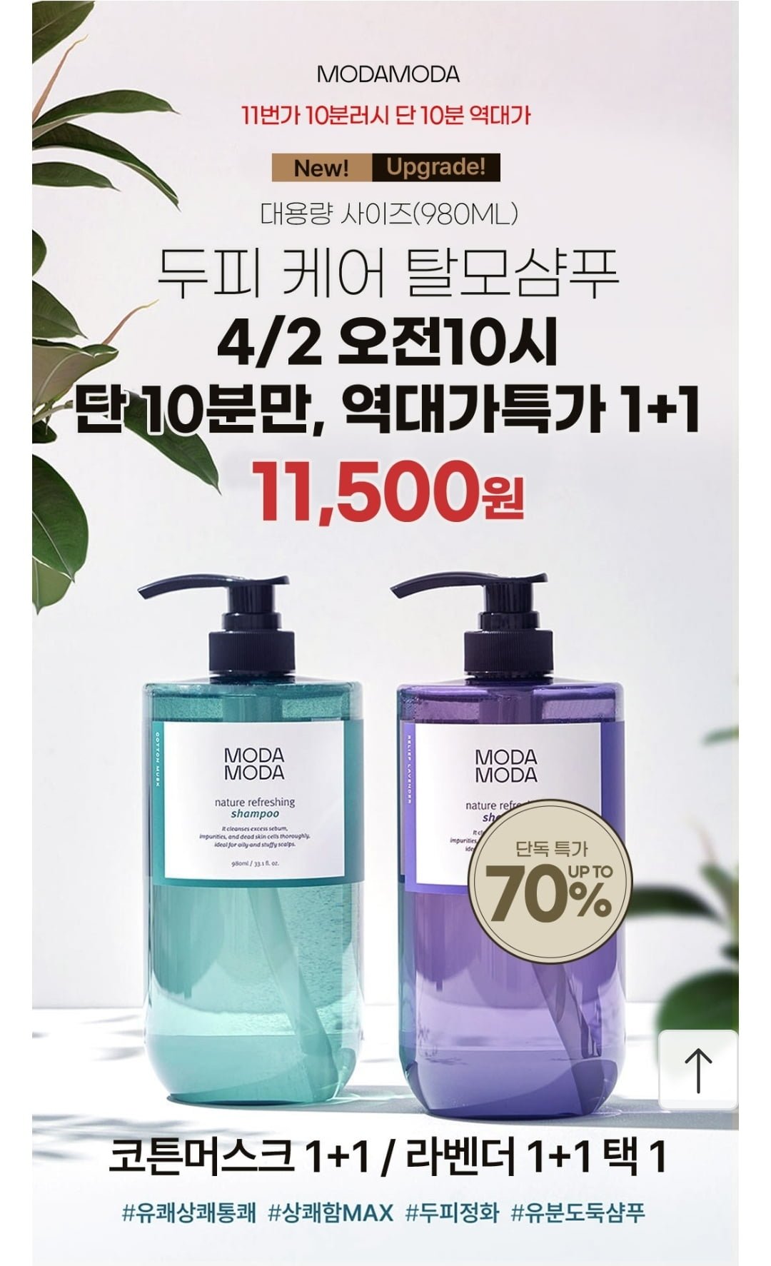 [11번가]모다모다 대용량 탈모샴푸 980ml 1+1 (11,500원/무료배송)