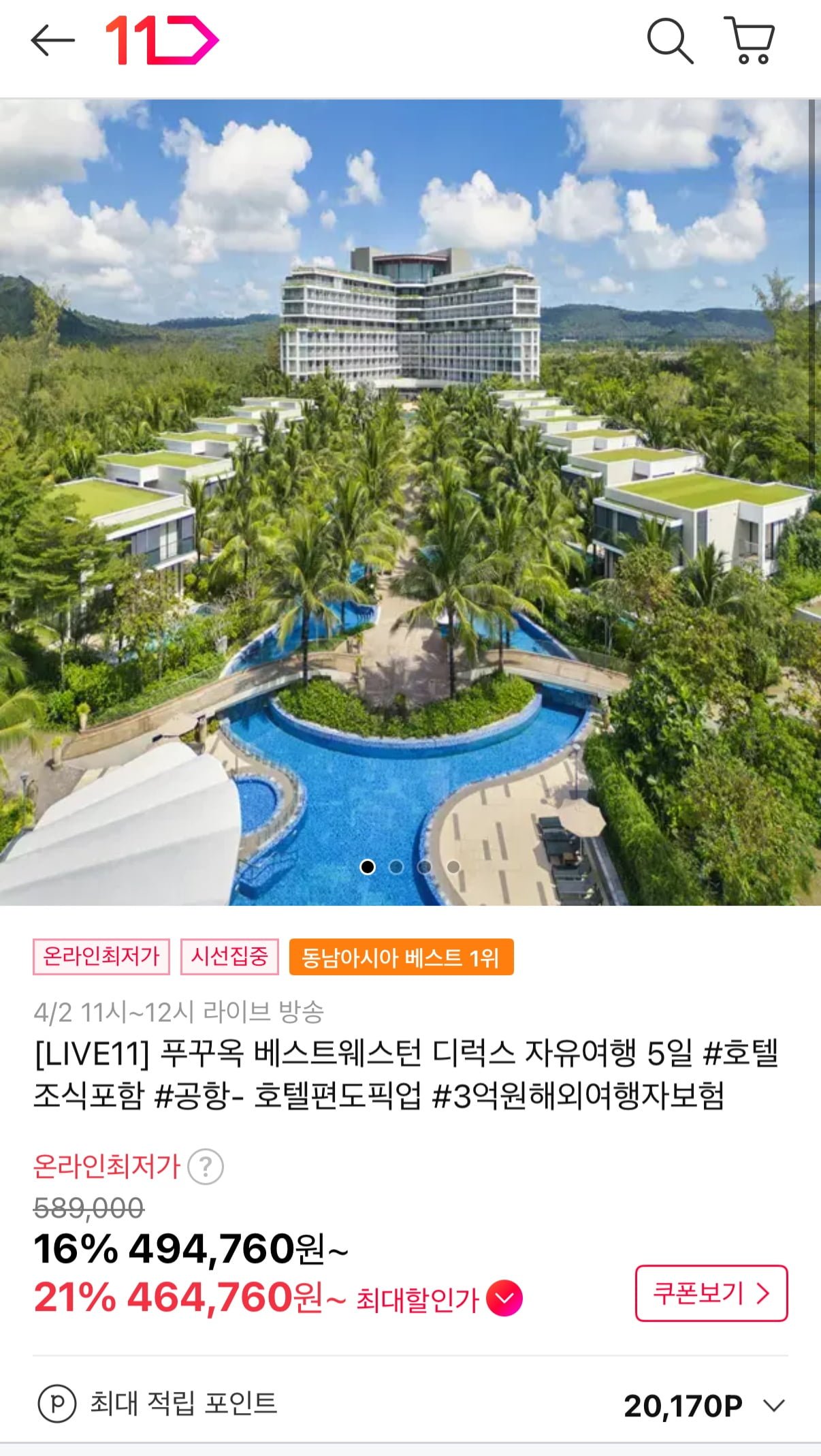 [11번가]푸꾸옥 베스트웨스턴 자유여행 3박 5일 (494,760원~/무료)
