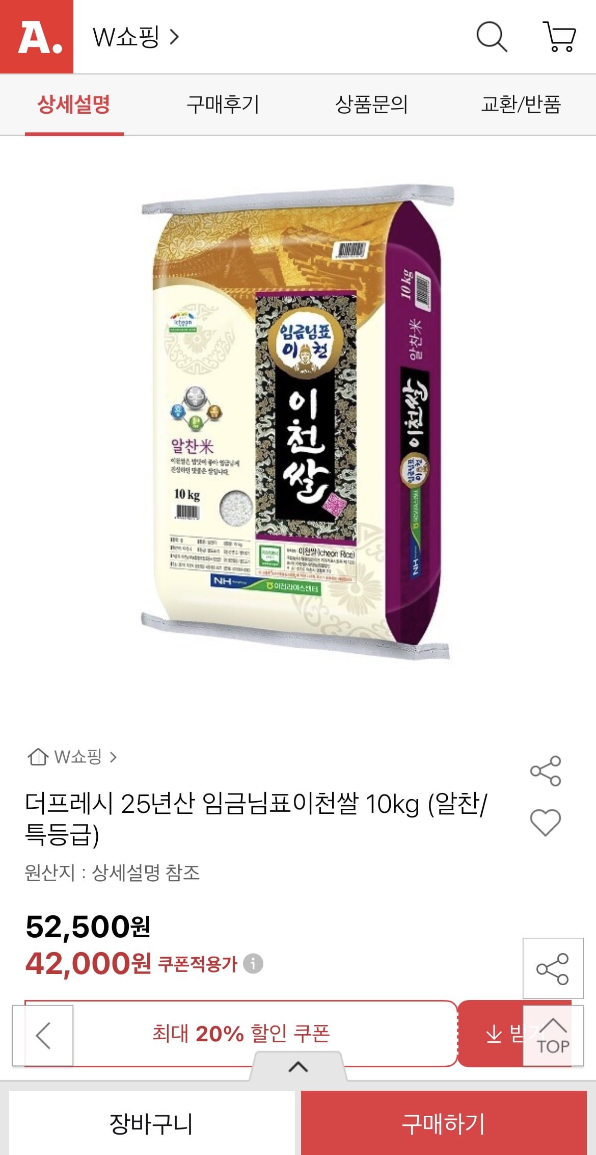 [옥션]임금님표이천쌀 10kg 알찬/특등급 (39,900원/무료)
