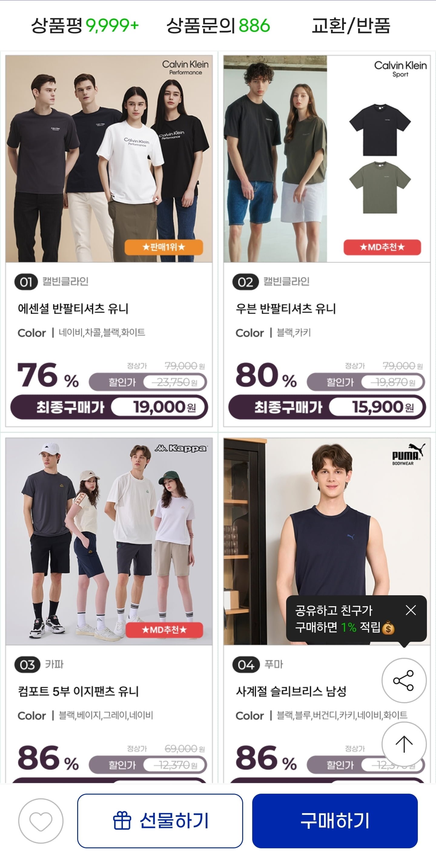 [지마켓]캘빈클라인 에센셜 반팔티셔츠 유니 (17,820원/무료) - 딜모아