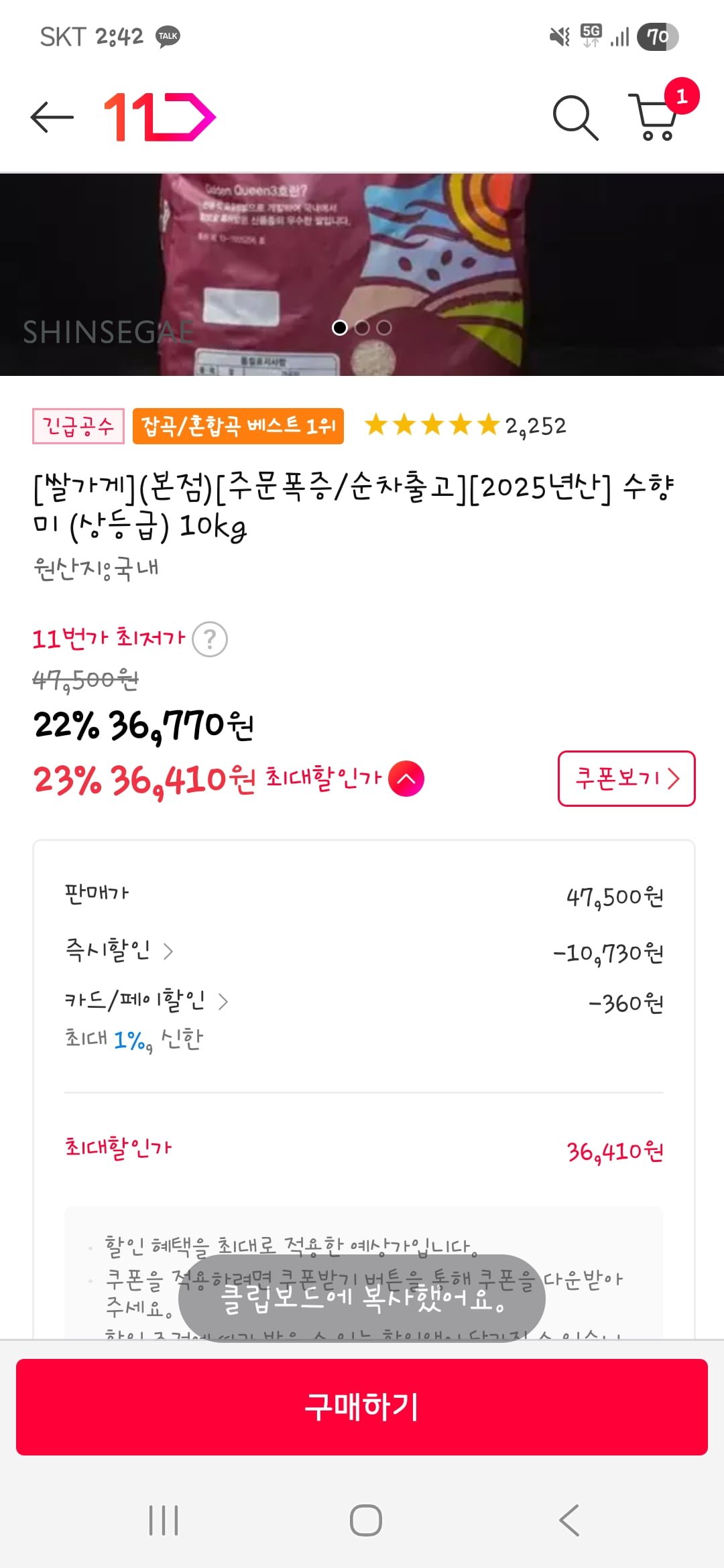 [11번가][쌀가게](본점)[주문폭증/순차출고][2025년산] 수향미 (상등급) 10kg 36,410원 무배