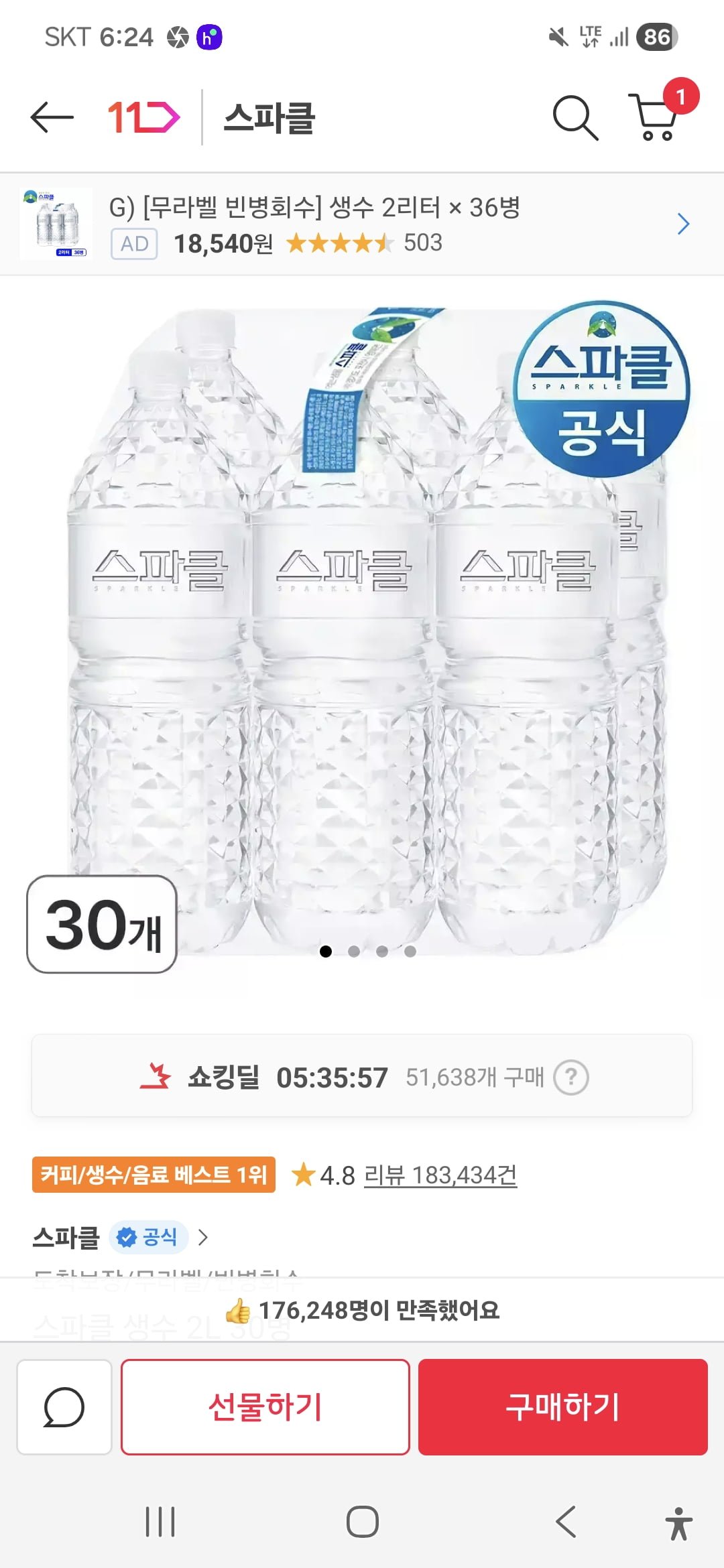 [11번가]스파클 2L 60, 120통(7% 쿠폰 또는 T우주패스, 페이코 포인트 결제가 23,470원, 45,660원/무료배송)뽐뿌·11일 전·45,660원👍 0💬 1기타11번가원문 보기 →