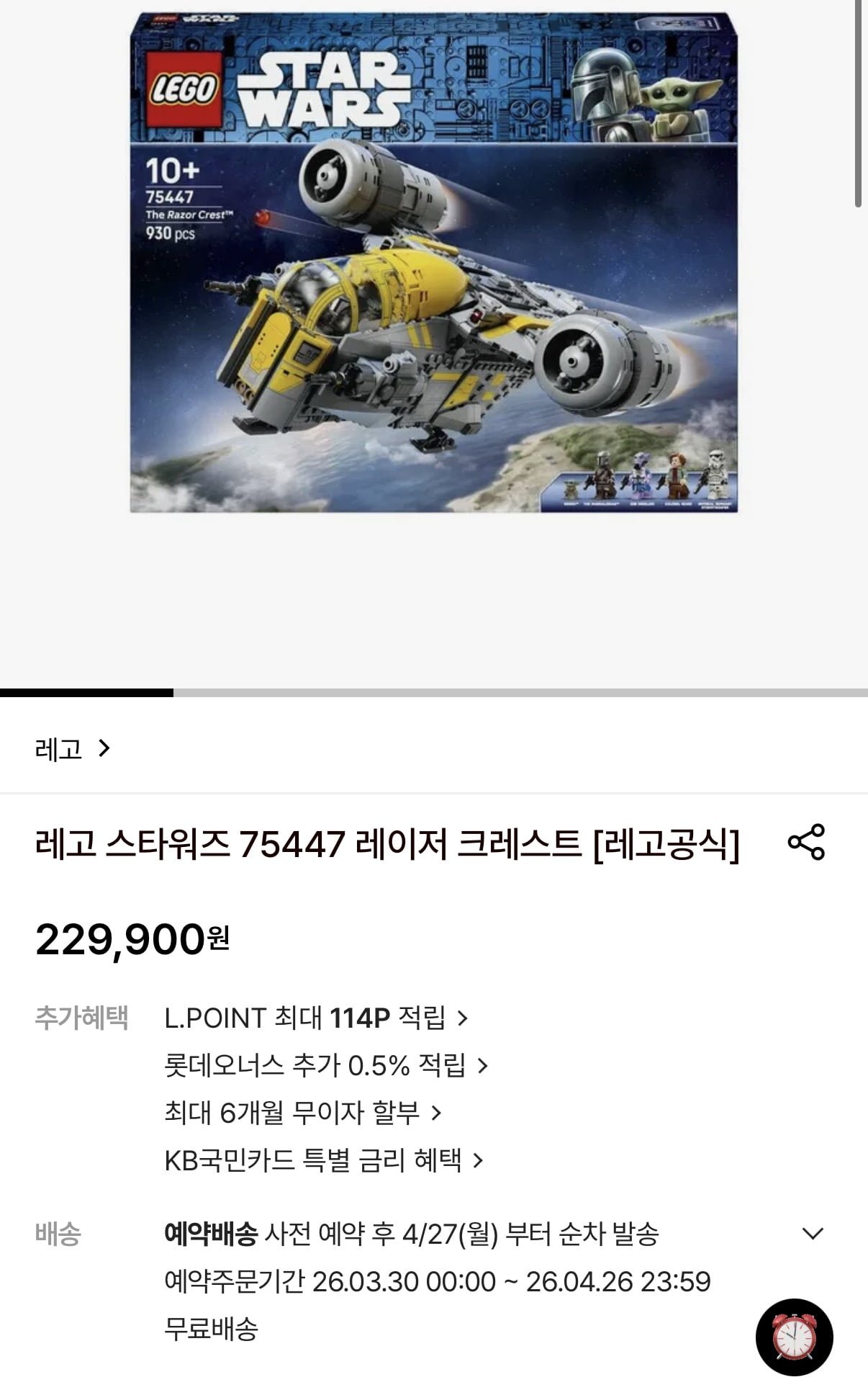 [롯데온]레고 공식 스타워즈 75447 레이저 크레스트 (229,900원/무료)