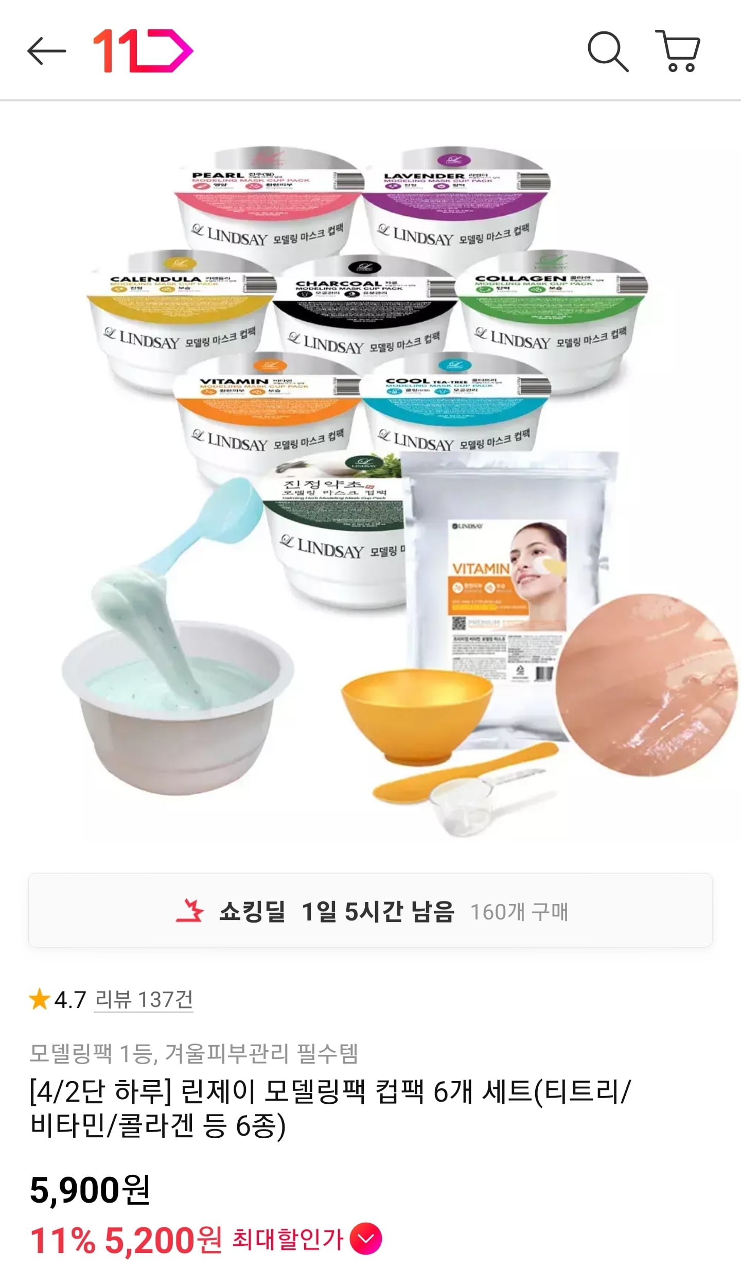 [11번가]린제이 모델링팩 컵팩 6개 세트 (5900원/무료) - 딜모아