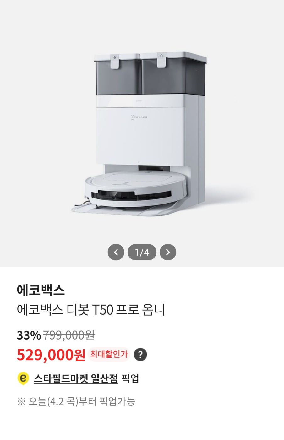 [이마트]에코백스 로봇청소기 디봇 T50 프로 옴니 (529,000/픽업)