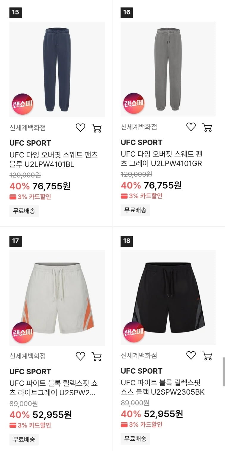 [SSG]UFC SPORT 자켓, 티셔츠, 바지 등 다양 (47,005원~/무료)