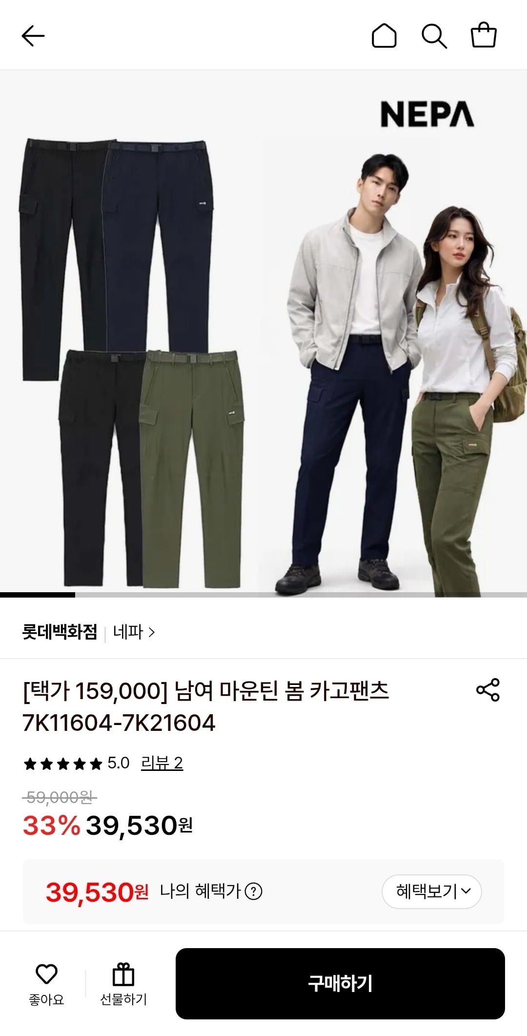 [롯데온]네파봄 카고 팬츠 7K11604 / 7K21604 (39,530원/무배)