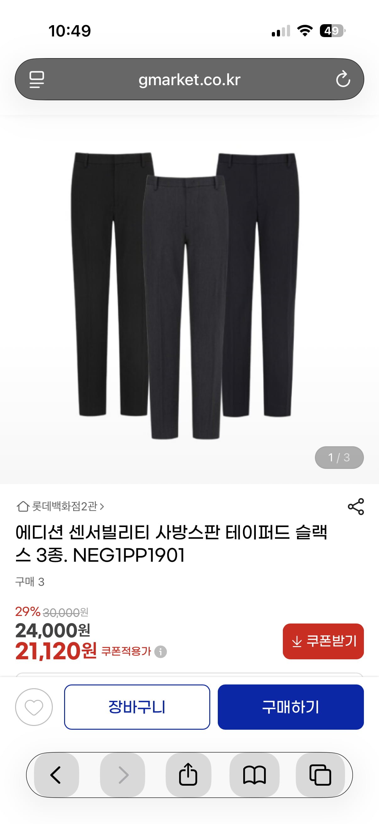 [지마켓]에디션 사방스판 테이퍼드 슬랙스 21,120원 (무배) - 딜모아