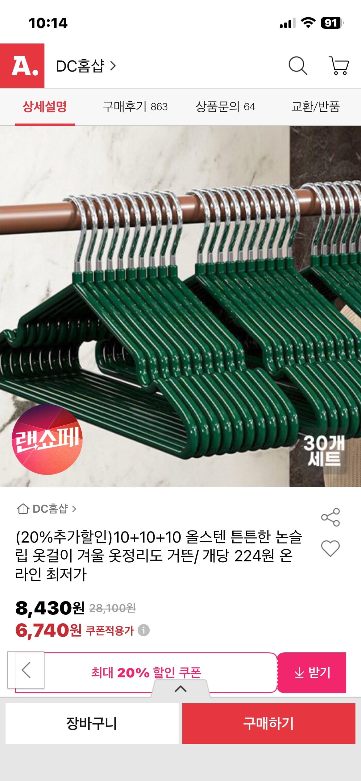 [옥션]10+10+10 올스텐 튼튼한 논슬립 옷걸이 겨울 옷정리(6740원/무배)