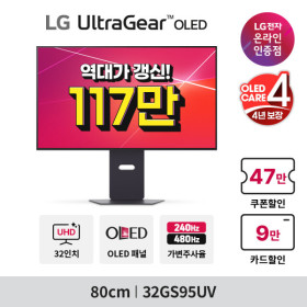 [G마켓]LG전자 32인치 4K OLED 게이밍모니터 32GS95UV 역대가 (1,179,080원, 무료)
