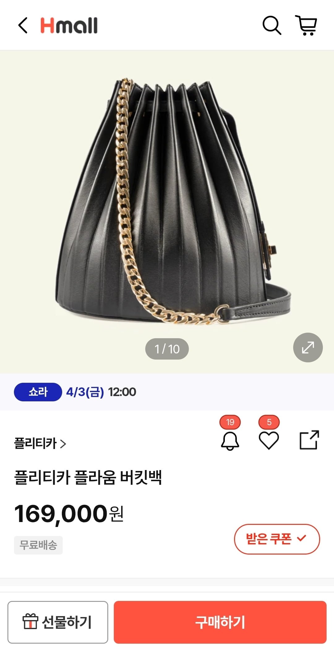 [현대몰]소가죽 플리티카 버킷백(169,000원/무배)