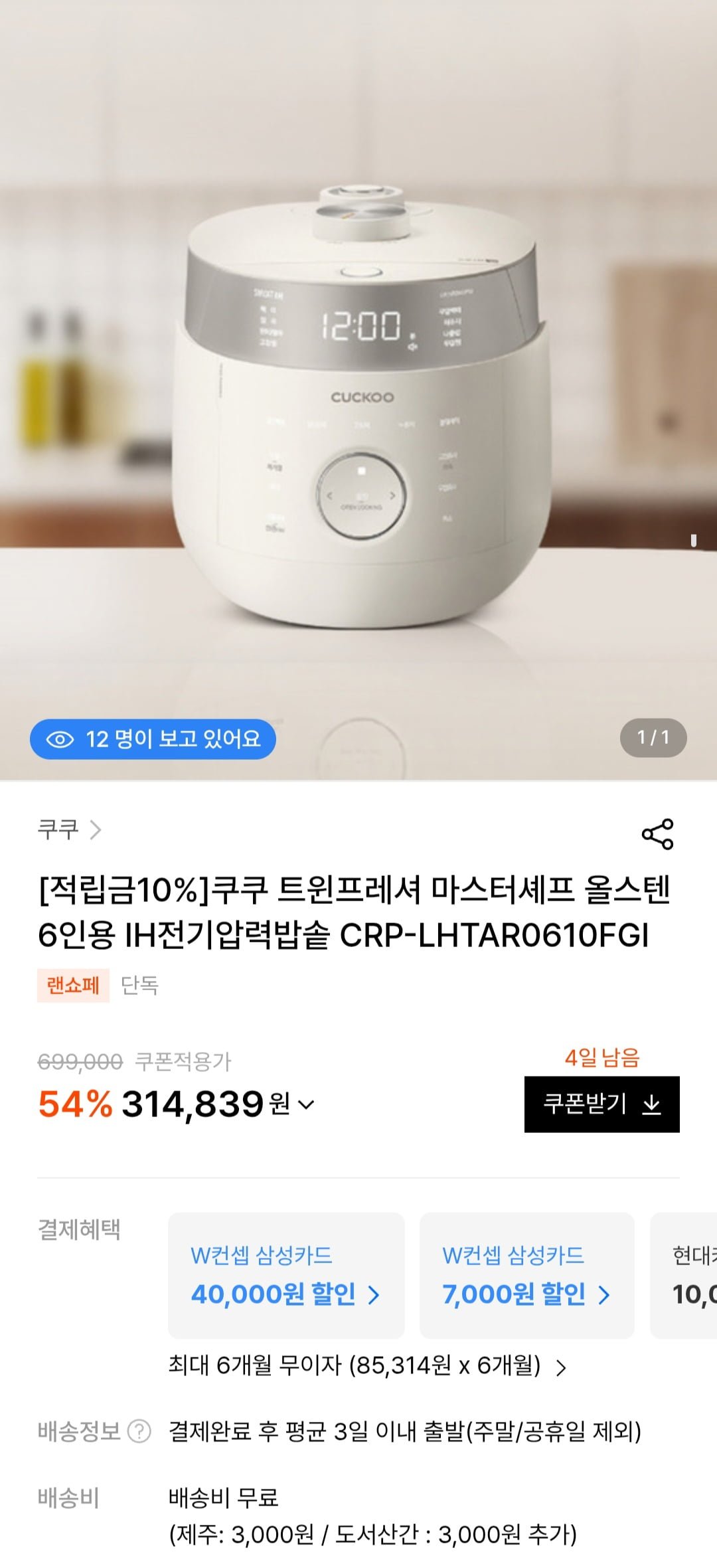 [W컨셉]신세계 랜더스위크 쿠쿠 밥솥 (263,651원/무료) - 딜모아