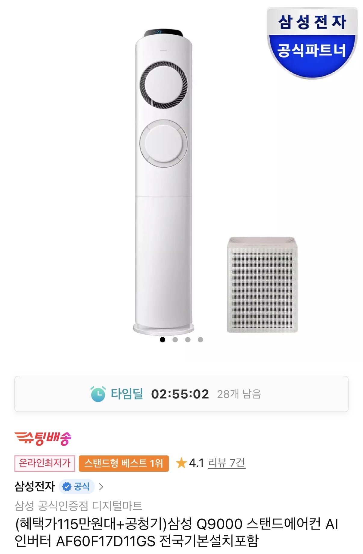 [11번가]삼성 Q9000 스탠드 인버터 에어컨+공기청정기(카드1,159,710원/무료) - 딜모아