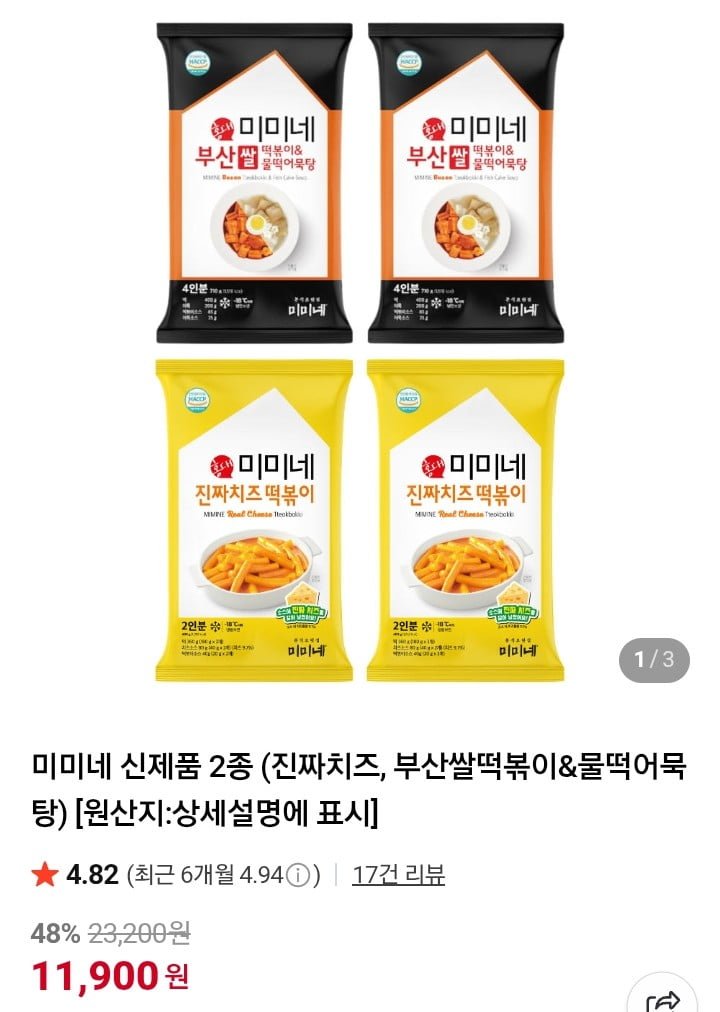 [네이버]미미네 떡볶이 진짜 치즈4봉 16인분 (11,900원/무료)