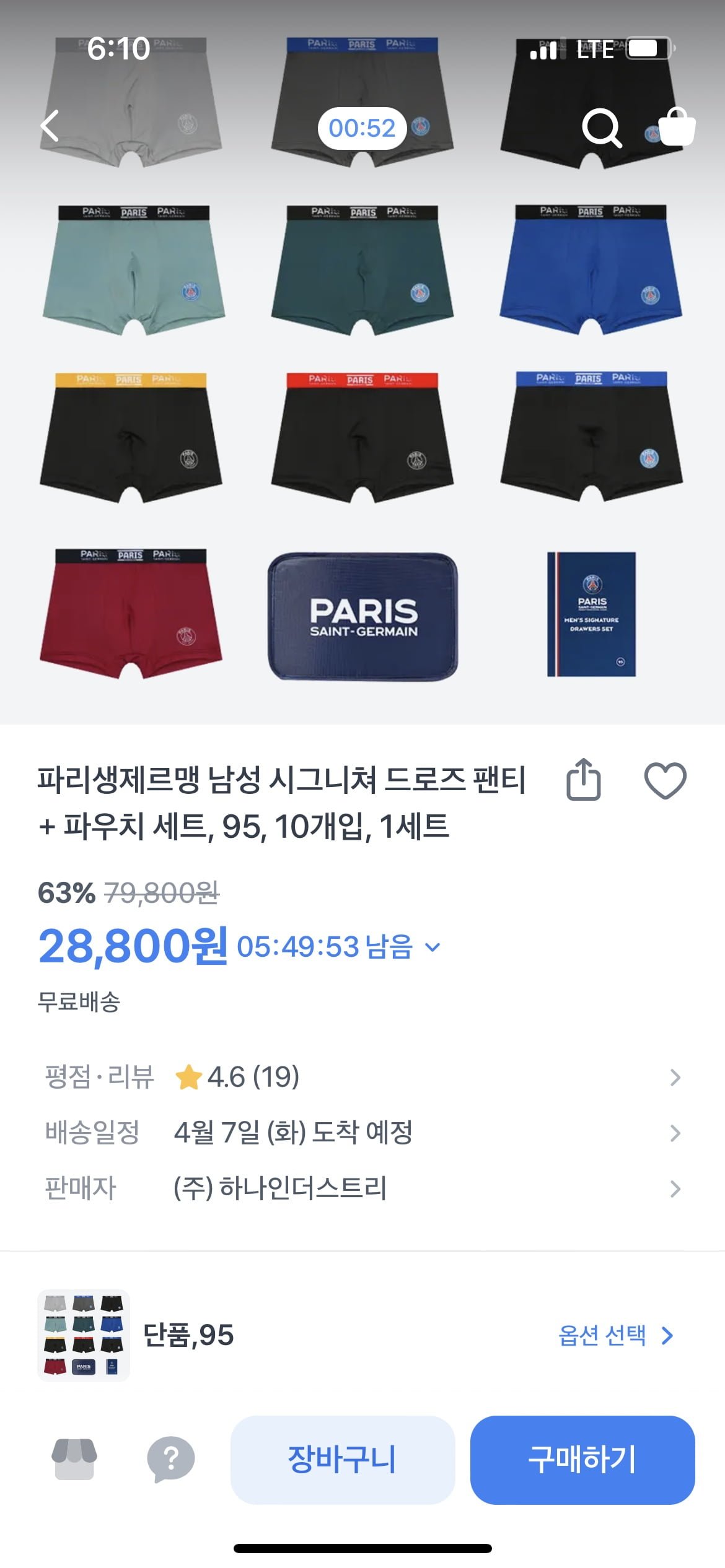[토스쇼핑]파리생제르맹 남성 시그니쳐 드로즈 팬티 + 파우치 세트 (28,800/무료)