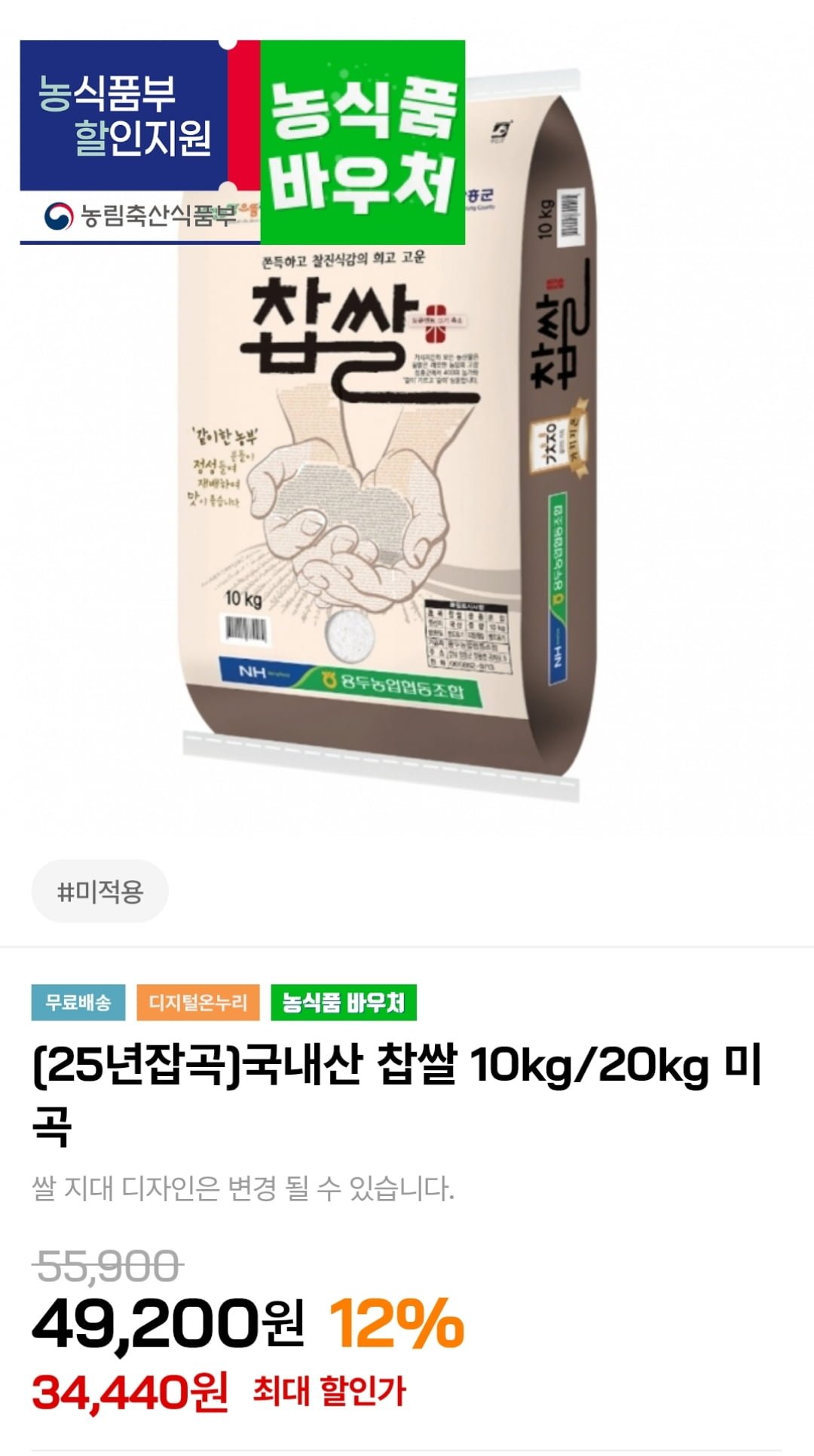 [인더마켓]25년잡곡 국내산 찹쌀 10kg (34,440원 / 무료)