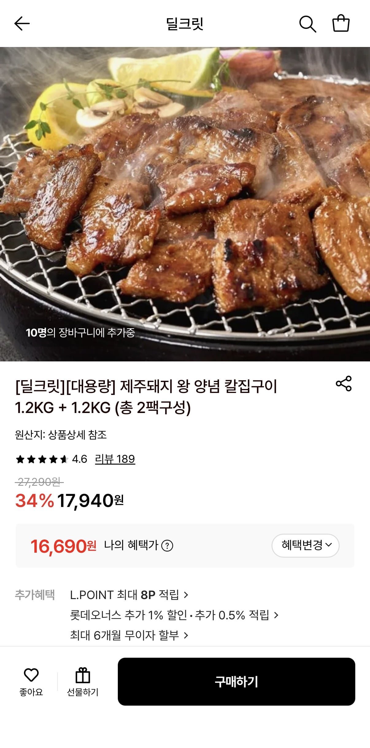 [롯데온]제주돼지 왕 양념 칼집구이 1.2KG 2팩 (16,690원/무료) - 딜모아