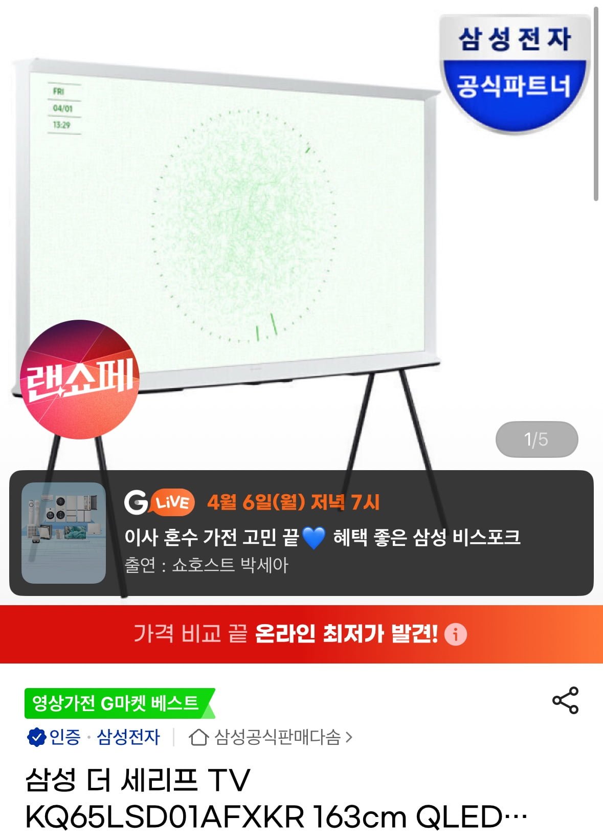 [지마켓]삼성 더 세리프 TV KQ65LSD01AFXKR 163cm(65인치) QLED The Serif(1,691,000원/무료)뽐뿌·9일 전·1,691,000원👍 0💬 2전자IT지마켓원문 보기 →