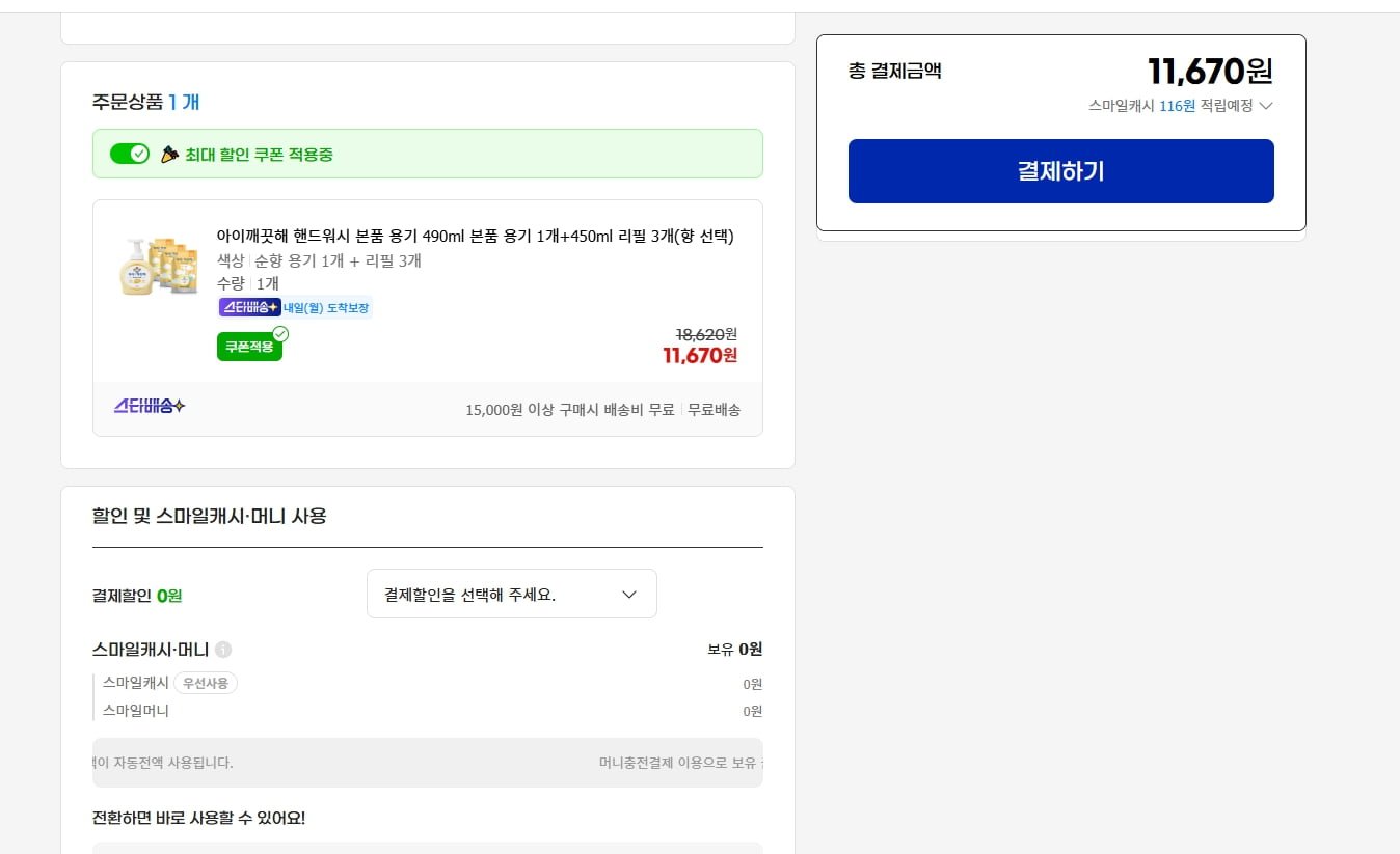 [G마켓]아이깨끗해 핸드워시 본품 용기 490ml 본품 용기 1개+450ml 리필 3개 (11,670/무료배송)