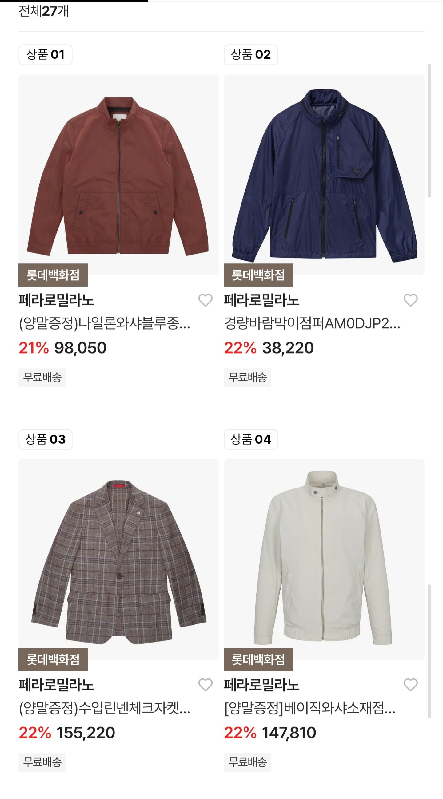[롯데온]페라로밀라노 경량 바람막이점퍼 (37,220원~/무료)