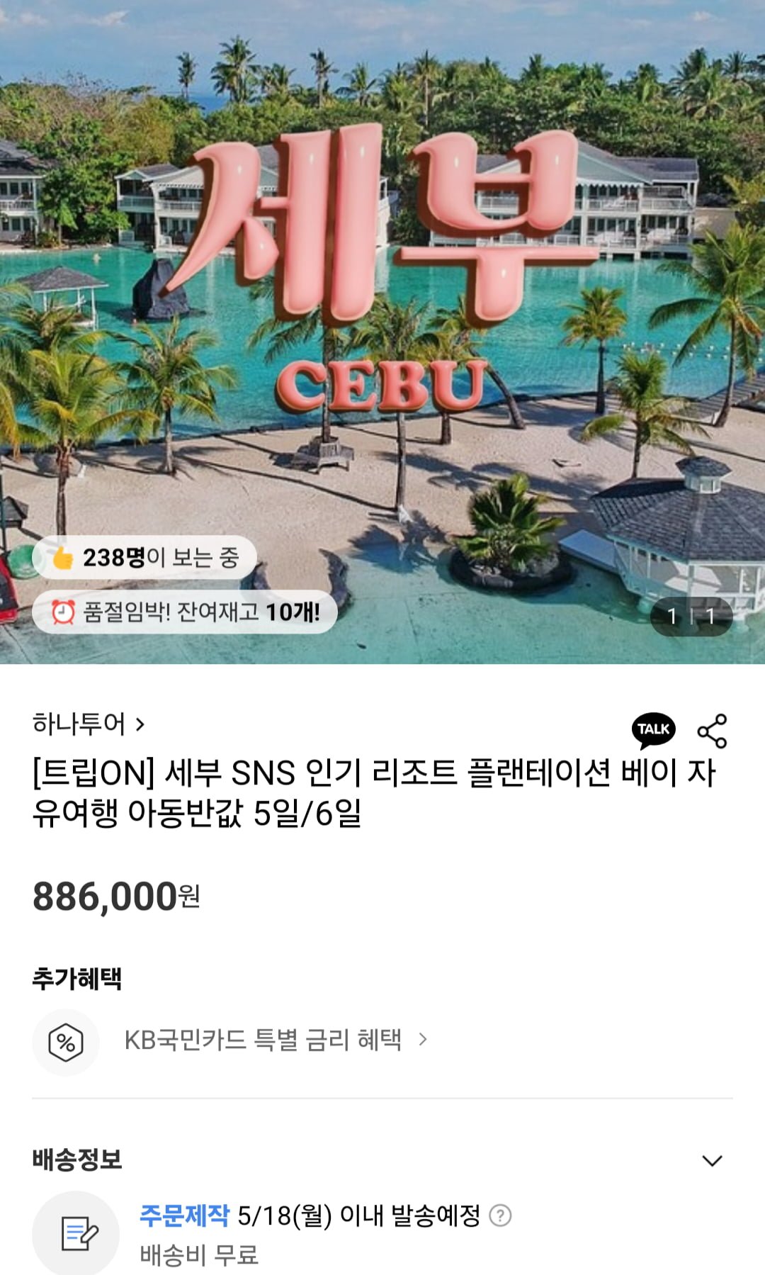 [롯데온]세부 자유여행 5일/6일 (롯데 삼성 799,620원~/무료)