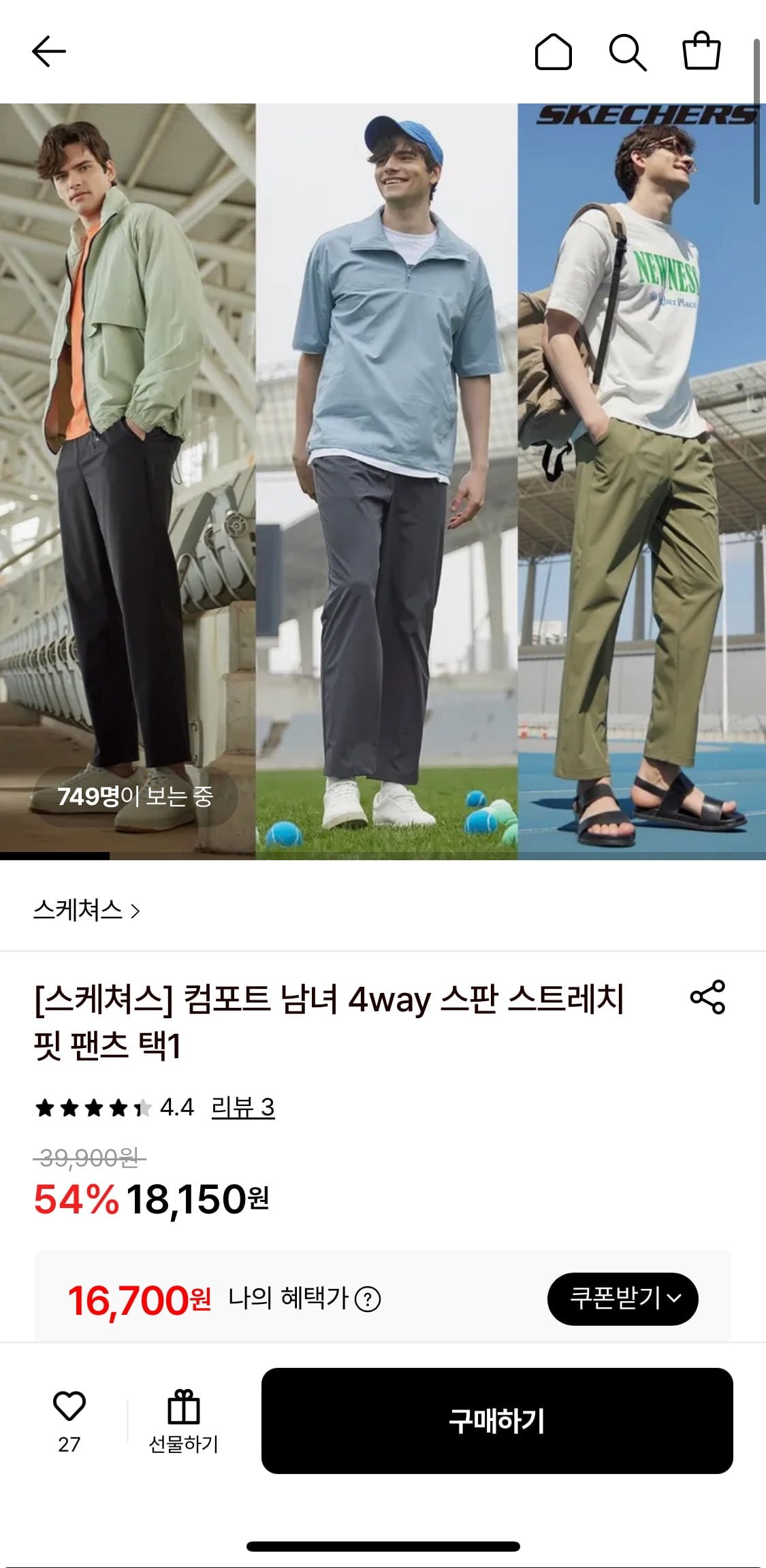 [롯데온]스케쳐스 4way 스판 스트레치 핏 팬츠 (16,700원/무료)
