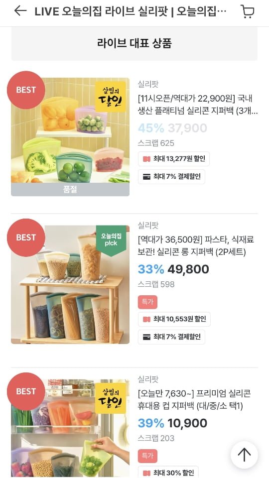 [오늘의집]실리팟 실리콘 지퍼백 라이브 특가 (22,900원~/무료)