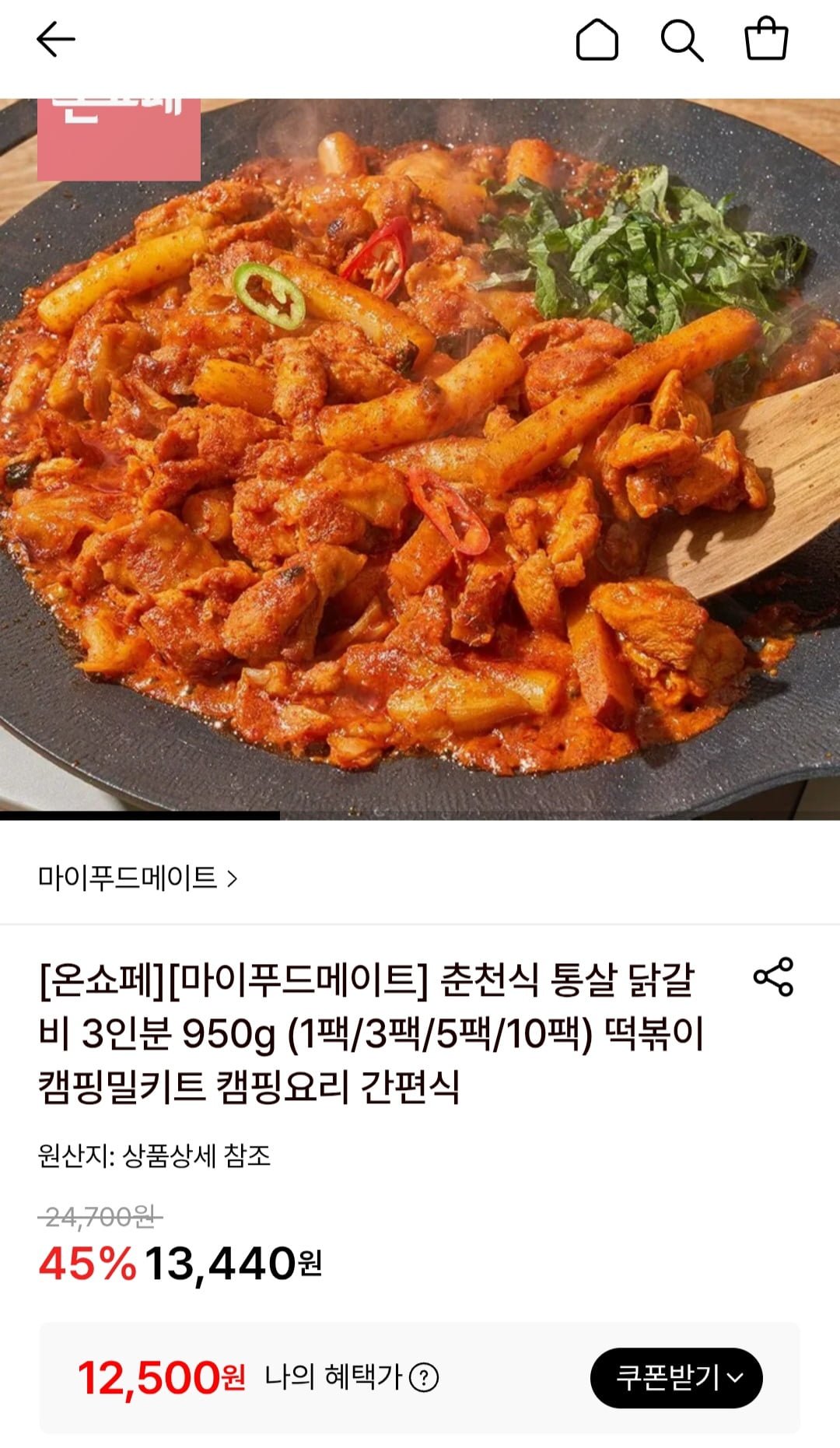 [롯데온]춘천식 통살 닭갈비 3인분(12,500원/무료)