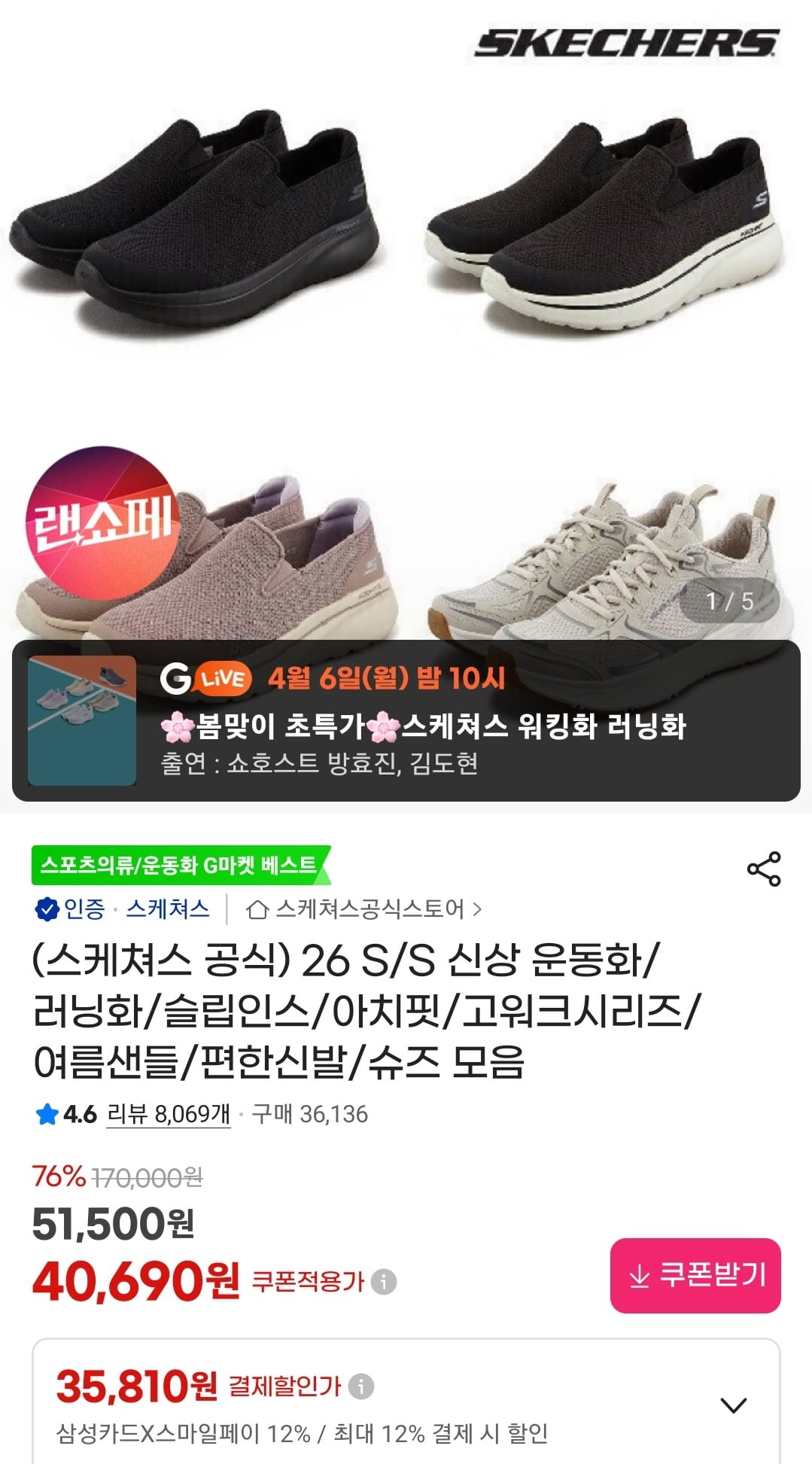 [지마켓]스케쳐스 운동화/자켓/티셔츠 외 (35,810원/무료)
