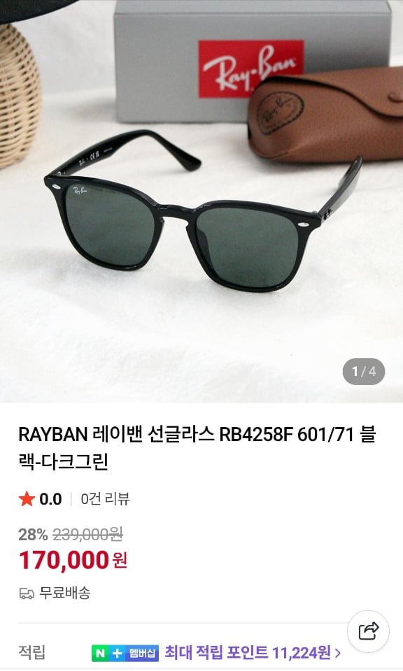 [네이버]레이밴 선글라스 RB4258F 블랙-다크그린 (170,000원/무료)
