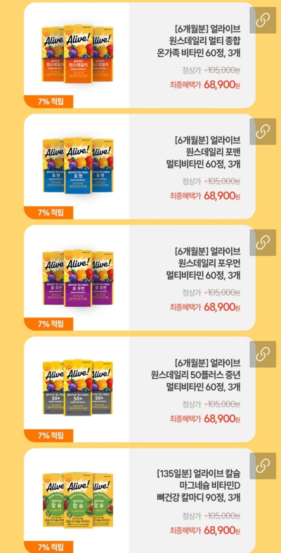 [네이버]얼라이브 원스데일리 멀티비타민 60정 3개 외 다양 (68,900원 / 무료)
