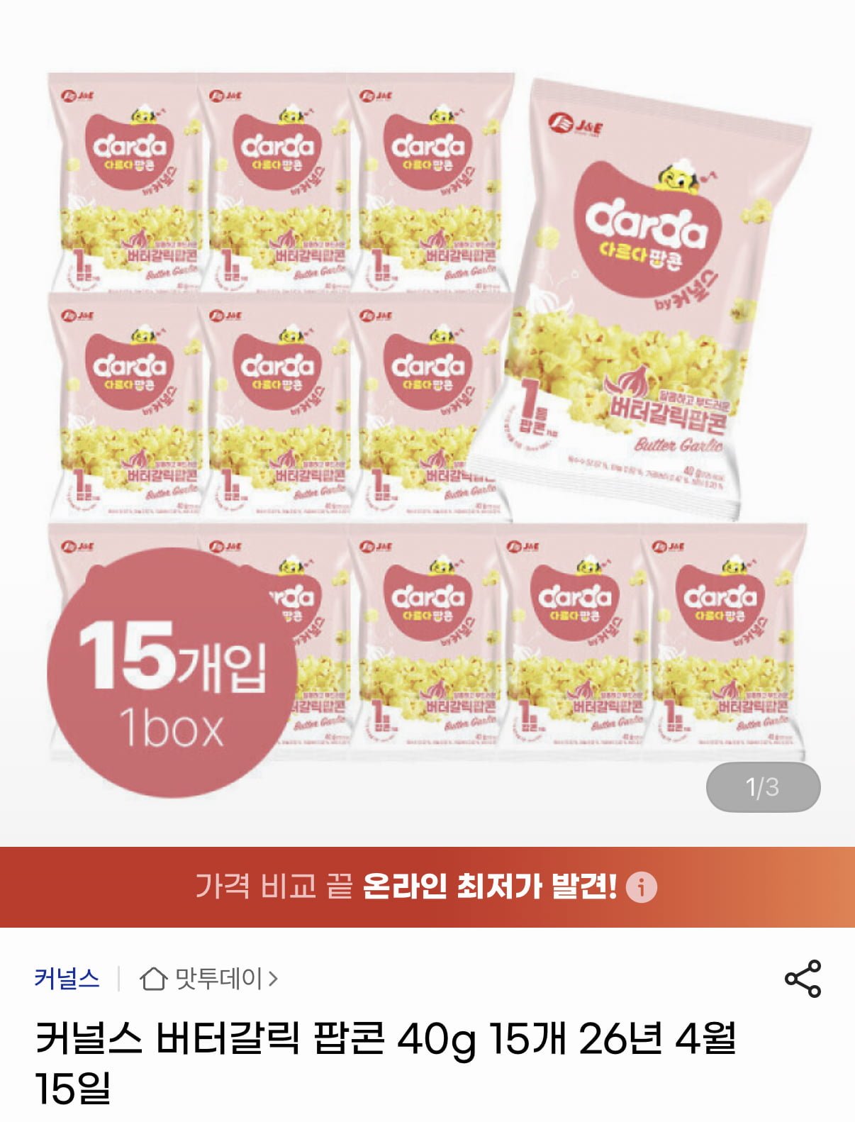 [G마켓]커널스 버터갈릭 팝콘 40g x 15개 (유클4,170원/무료) - 딜모아